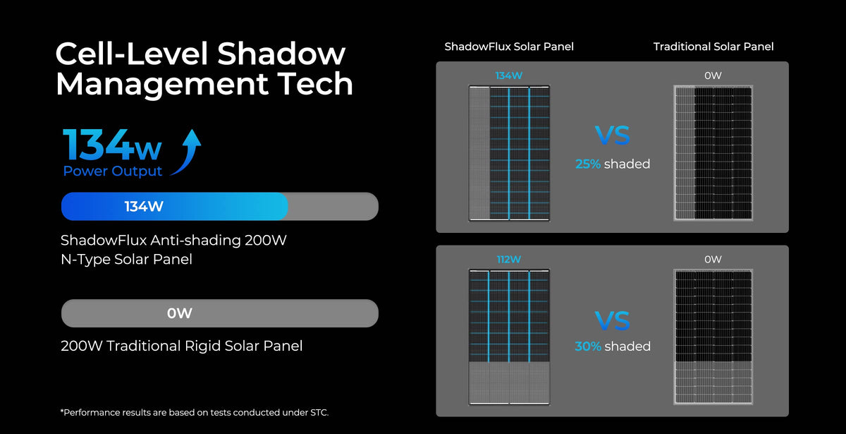 La tecnología anti-sombreado ShadowFlux está diseñada para mantener una alta producción de energía incluso cuando el módulo solar está parcialmente sombreado, garantizando una generación constante de electricidad.