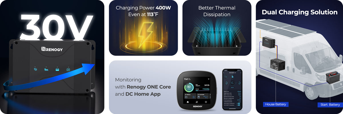 Cargador de Batería DC-DC Dual 12V 30A con Entrada Solar – Renogy