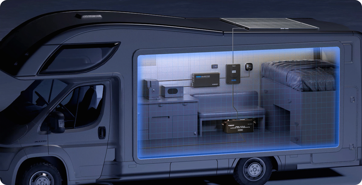 Carga de doble fuente: Combina un cargador DC-DC de 50A (desde el alternador del vehículo) y un controlador solar MPPT en una sola unidad. Energía rápida y eficiente: Recarga la batería con velocidad desde tu vehículo y los paneles solares, aprovechando al máximo la eficiencia solar para una carga más rápida y estable.