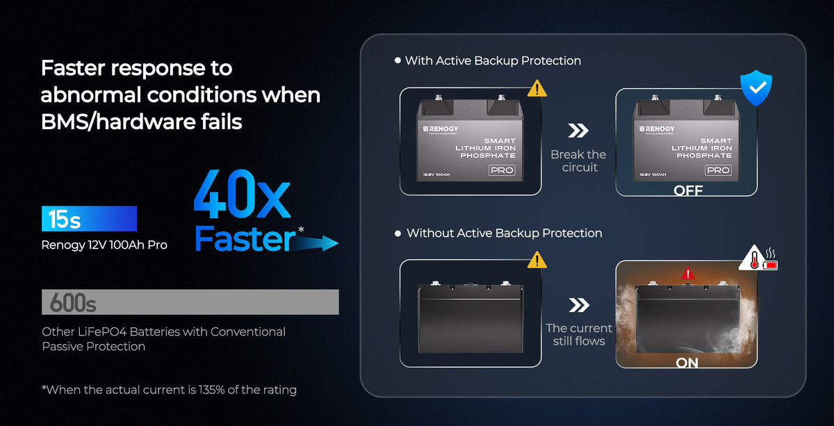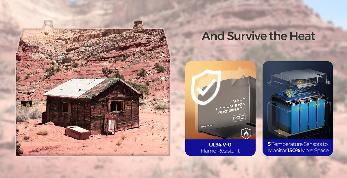 Vivir en climas cálidos y fuera de la red es más seguro que nunca con la nueva batería de la serie Pro, gracias a su carcasa resistente al fuego (UL94 V-0). Ofrece una resistencia excepcional a la combustión vertical, una característica de seguridad crucial para proteger tu suministro de energía frente a riesgos de incendio y reducir el riesgo de propagación, especialmente en zonas remotas donde la respuesta de emergencia puede retrasarse.